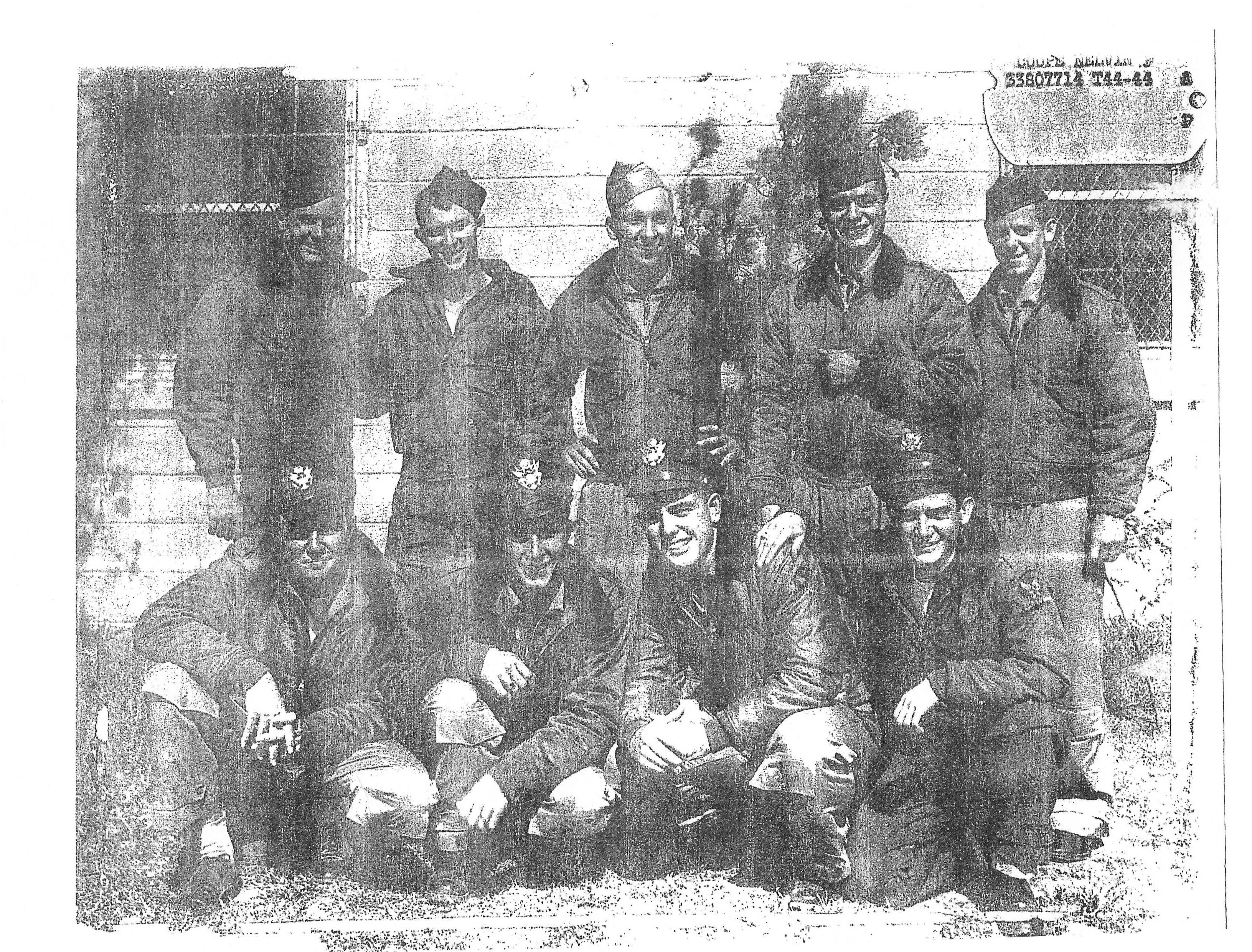 SSgt. Nelvin F. Coupe with the flight crew of the Sky Queen, part of the 91st Bomber Group that flew on the March 15th Oranienburg Missions. Photo shared with the kind permission of his daughter, Betty.