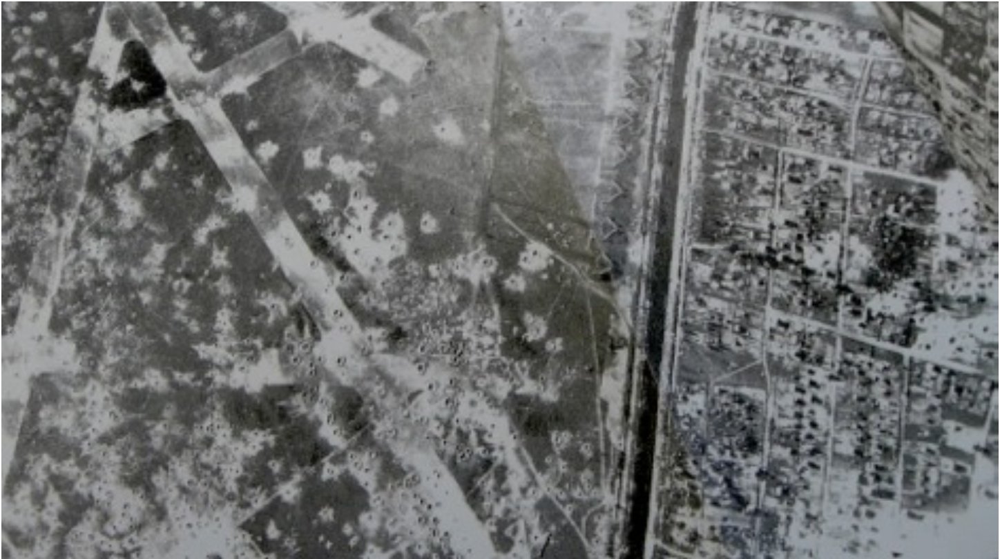 Aeriel view of Oranienburg after the bombings. Images like this one are used by bomb disposal experts to locate the bombs for safe detonation